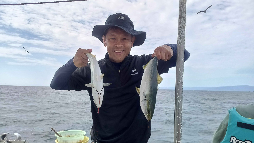 しばらく当たりが出ません、皆で頑張ってコマセをまくと